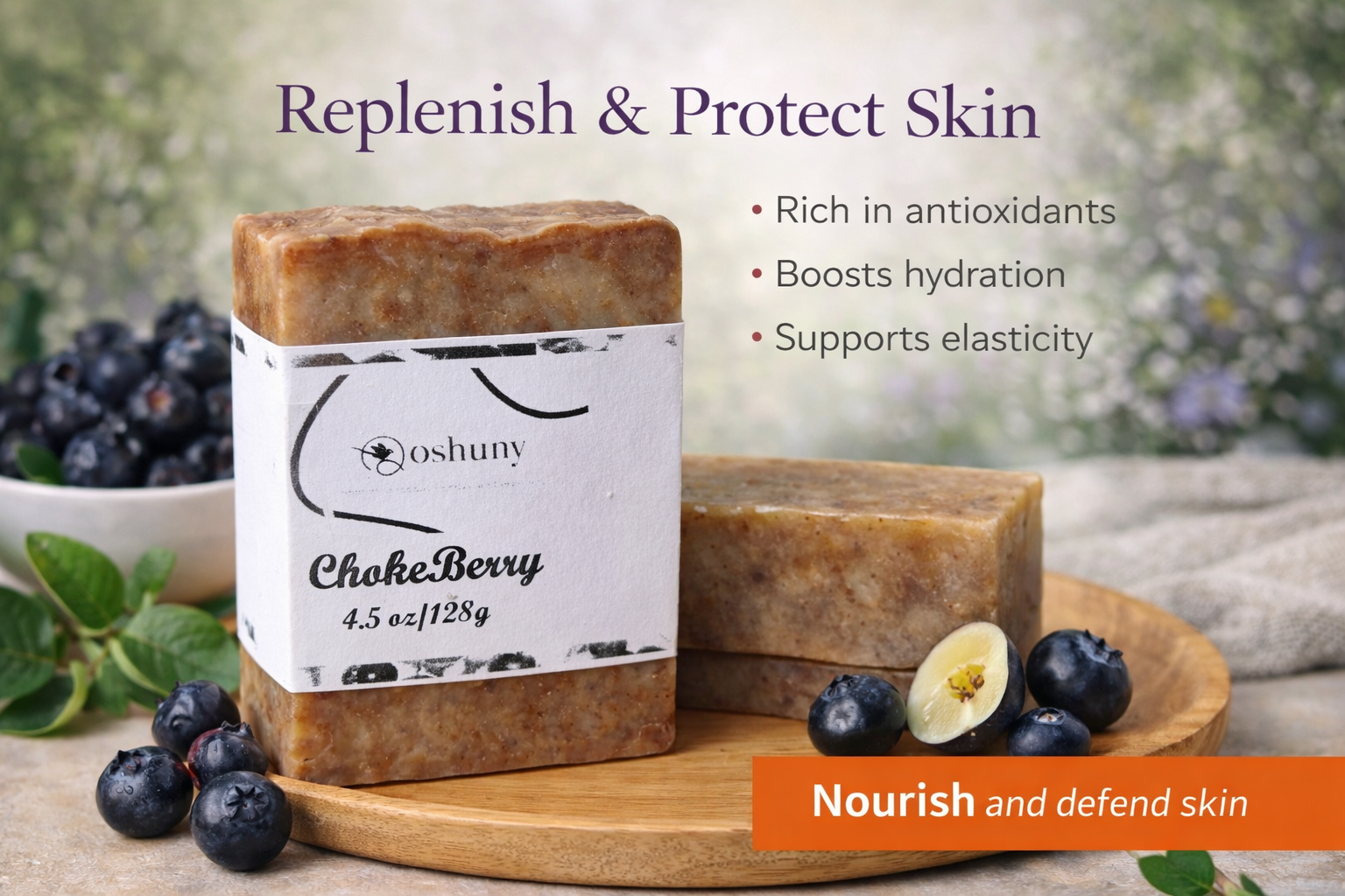 A chokeberry soap crafted to nourish skin and support a refreshed look.