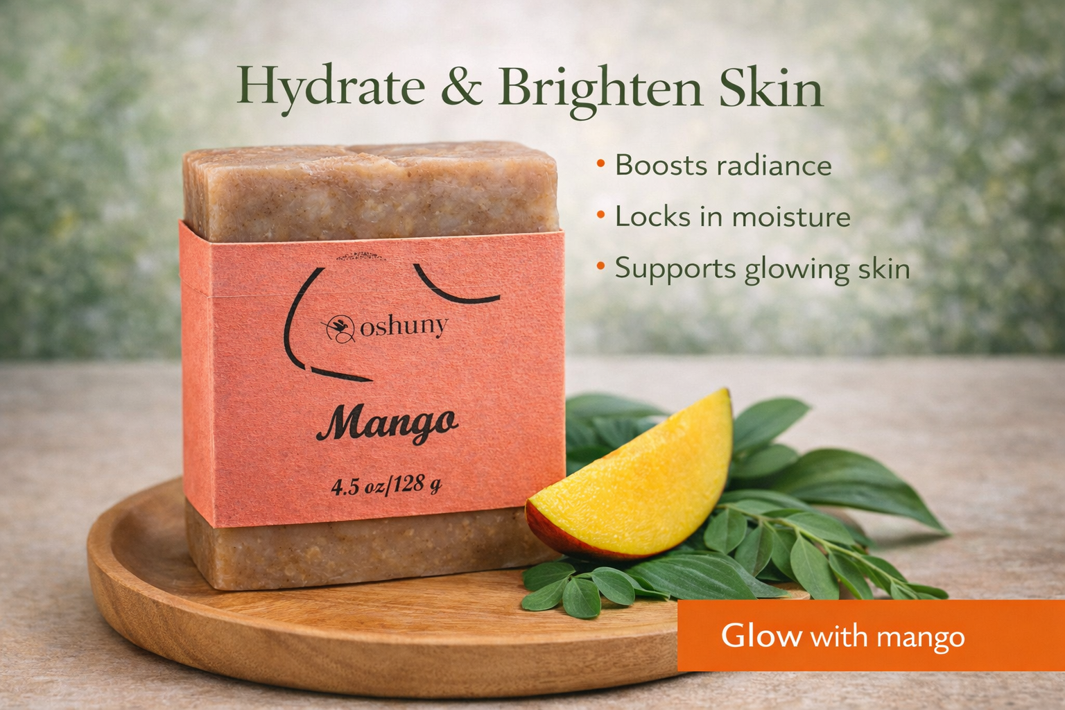 A mango soap selected to help hydrate and brighten the look of skin.